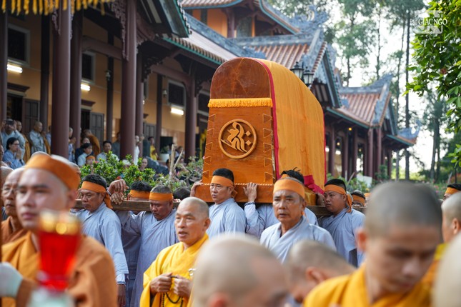Cung thỉnh bát hương, linh mô, di ảnh, kim quan Hòa thượng Thích Huệ Cảnh rời Giác linh đường nhập bảo tháp