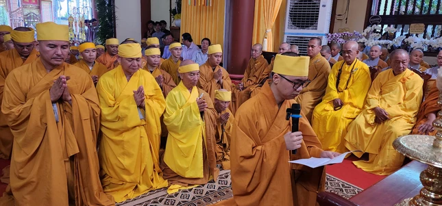 | Trao giáo chỉ truy phong giáo phẩm Hòa thượng đến đại diện môn đồ pháp quyến |