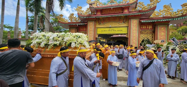 Ban Tổ chức Tang lễ đã cung thỉnh Thượng tọa Thích Phước Cường, Trưởng ban Nghi lễ GHPGVN tỉnh Long An sám chủ, tuyên pháp ngữ và phất trần cung tống kim quan. Môn đồ pháp quyến cung thỉnh lư hương, linh vị, y bát, di ảnh và kim quan Hòa thượng rời Giác linh đường trong tiếng chuông trống Bát-nhã trầm hùng và trong âm vang tiếng niệm Phật của đại chúng đến nơi bảo tháp an vị.
