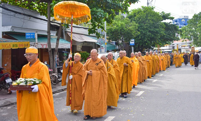 | Cung thỉnh kim quan Hòa thượng Thích Thiện Nghĩa rời Giác linh đường chùa Chơn Giác đến nơi tổ chức trà-tỳ |