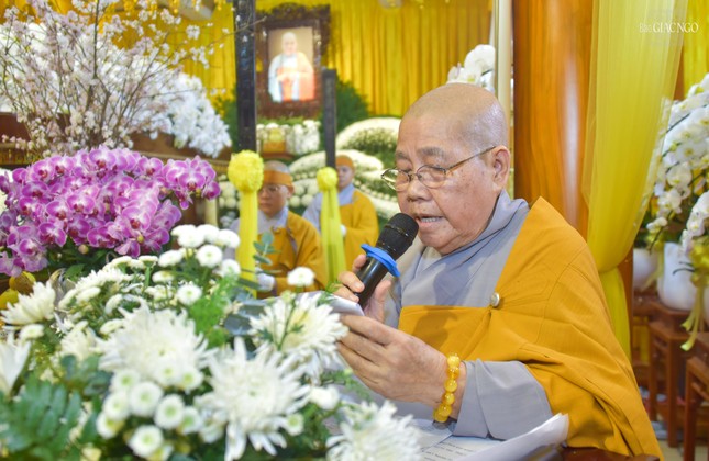 Ni trưởng Thích nữ Từ Nhẫn, Phó Trưởng Phân ban Ni giới T.Ư, Trưởng Phân ban Ni giới TP.HCM dâng lời điếu văn tưởng niệm, tri ân những đóng góp của cố Ni trưởng Thích nữ Tâm Hoa lúc còn sinh tiền đối với Ni giới TP.HCM và quận nhà.