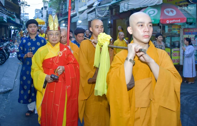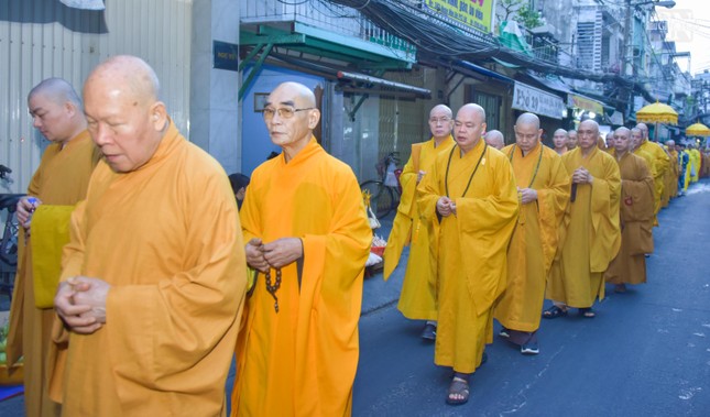 Sau đó, Ban Tổ chức lễ tang đã cung thỉnh Trưởng lão Hòa thượng Thích Như Tín phất trần. Ban Nghi lễ thực hiện các nghi thức di quan đến Đài hỏa táng Đa Phước (H.Bình Chánh, TP.HCM) để làm lễ trà-tỳ trong tiếng đồng thanh niệm Phật của Tăng Ni, Phật tử.