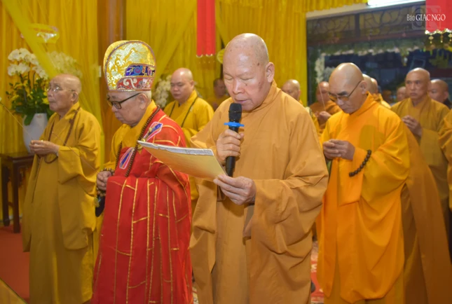 Sau đó, Thượng tọa Thích Minh Bảo, Trưởng ban Trị sự GHPGVN Q.4 đọc điếu văn tưởng niệm.