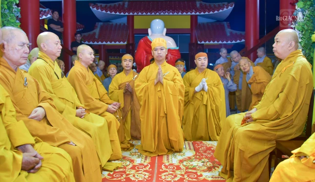 Tại buổi lễ, Đại đức Thích Tắc Thiện, trụ trì chùa Quang Minh, Trưởng tử Trưởng lão Hòa thượng Thích Đạt Phước dâng lời tưởng niệm ân sư.