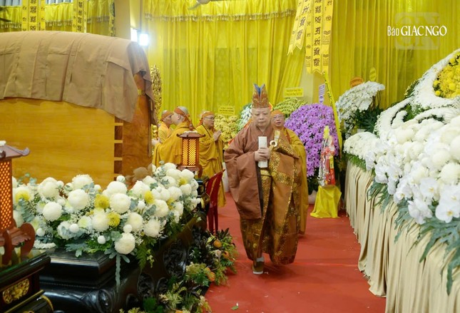 Tiếp đó, theo sự dẫn lễ Hòa thượng Thích Lệ Trang, Phó Chủ tịch Hội đồng Trị sự, Trưởng ban Nghi lễ T.Ư, Trưởng ban Trị sự GHPGVN TP.HCM cùng chư tôn đức ban kinh sư, chư vị Trưởng lão, giáo phẩm đã dâng hương bái biệt.