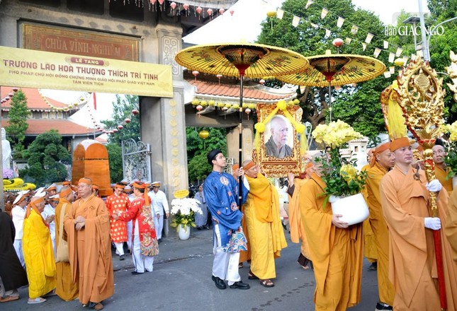 Lễ truy niệm, phụng tống kim quan Trưởng lão Hòa thượng Thích Trí Tịnh vào sáng 12-10 (nhằm ngày 20-8-Ất Tỵ) - Ảnh: Bảo Toàn