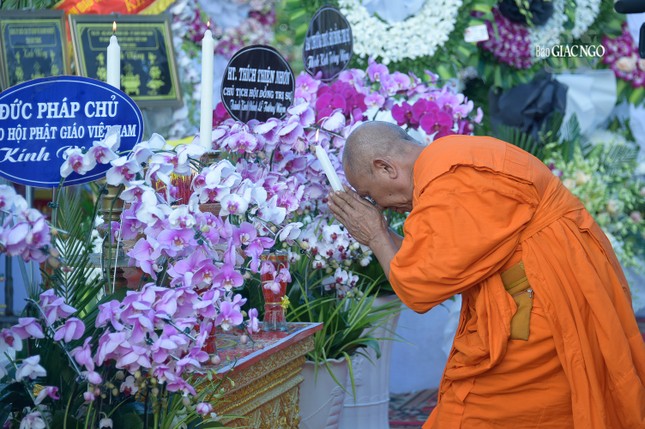 Nhằm tri ân những công đức to lớn của cố Trưởng lão Hòa thượng đối với GHPGVN, trước đài trà-tỳ, Hòa thượng Thích Thiện Nhơn dâng lời tưởng niệm.
