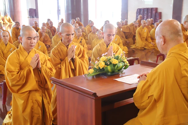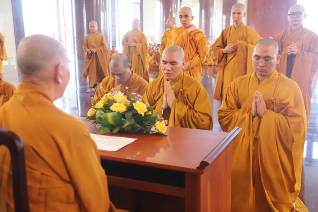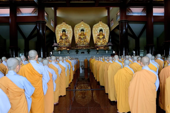 GNO - Hôm nay, ngày 10-7-Quý Mão (25-8-2023), tại hạ trường Học viện Phật giáo VN tại TP.HCM với hơn 1.000 hành giả Tăng, Ni đang tu học nội trú đã tác pháp Tự tứ dưới sự chứng minh của Trưởng lão Hòa thượng Thích Trí Quảng, Pháp chủ GHPGVN, Viện trưởng Học viện, Thiền chủ hạ trường.