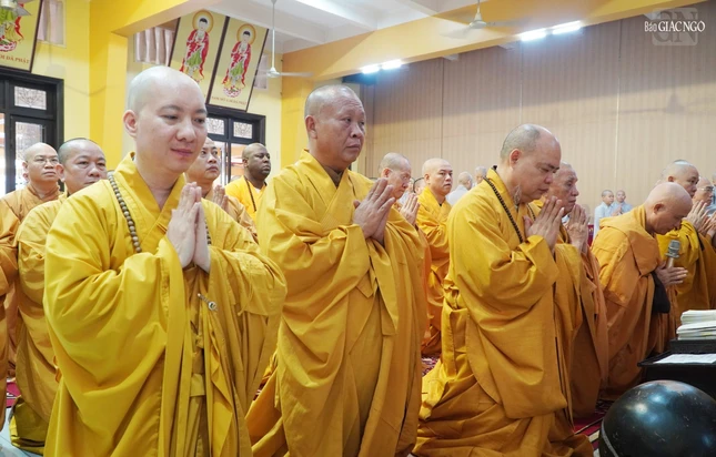 Tại buổi lễ, Thượng tọa Thích Giác Dũng thay mặt hành giả An cư kiết hạ và môn đồ đệ tử tác trình duyên sự và tác bạch pháp sự.