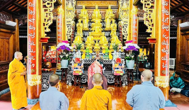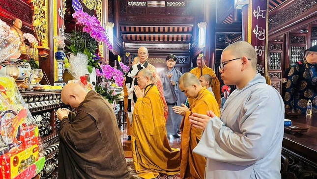 Tại buổi lễ, chư tôn giáo phẩm dâng hương tưởng niệm Hòa thượng Thích Tâm Châu (1921-2015), nguyên Chủ tịch Ủy ban Liên phái Bảo vệ Phật giáo.