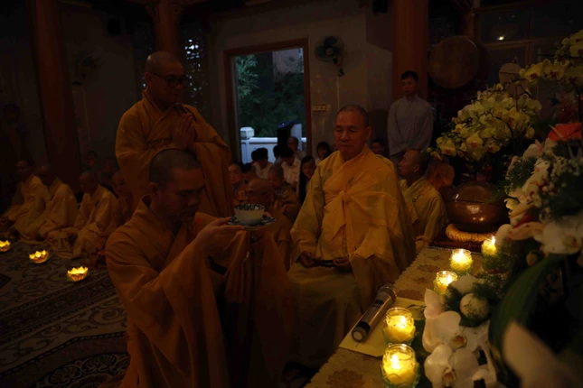 Tối cùng ngày, môn đồ pháp quyến và Phật tử đạo tràng chùa Bát Nhã đã trang nghiêm tổ chức lễ thắp nến tri ân, cầu nguyện.