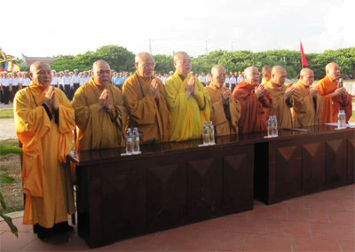 Sau phần nghi thức, toàn thể đại biểu tham dự và Tăng Ni, Phật tử mặc niệm các liệt sĩ và dâng hương cầu nguyện.