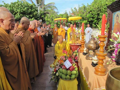 Dự lễ có: Thứ trưởng Bộ Ngoại giao, Chủ nhiệm Ủy ban Nhà nước về người Việt Nam ở nước ngoài Nguyễn Thanh Sơn; nguyên Phó Chủ tịch nước Trương Mỹ Hoa - Chủ tịch Hội đồng Bảo trợ Quỹ Hỗ trợ và Vận động Cộng đồng người Việt Nam ở nước ngoài; Chuẩn Đô đốc Nguyễn Cộng Hòa - Phó Chính ủy Quân chủng Hải Quân; HT.Thích Trí Tâm - Thành viên HĐCM, Trưởng ban Nghi lễ Trung ương GHPGVN; HT.Thích Thiện Nhơn - Phó Chủ tịch kiêm Tổng Thư ký Hội đồng Trị sự GHPGVN cùng Đoàn công tác và đông đảo cán bộ, chiến sĩ, nhân dân thị trấn Trường Sa Lớn.