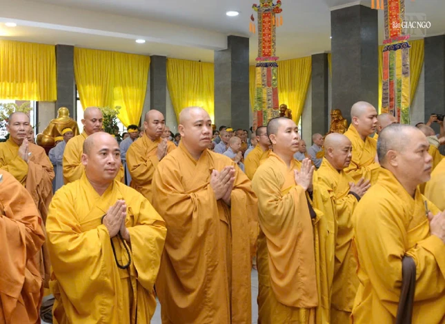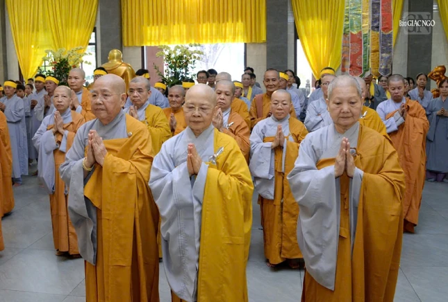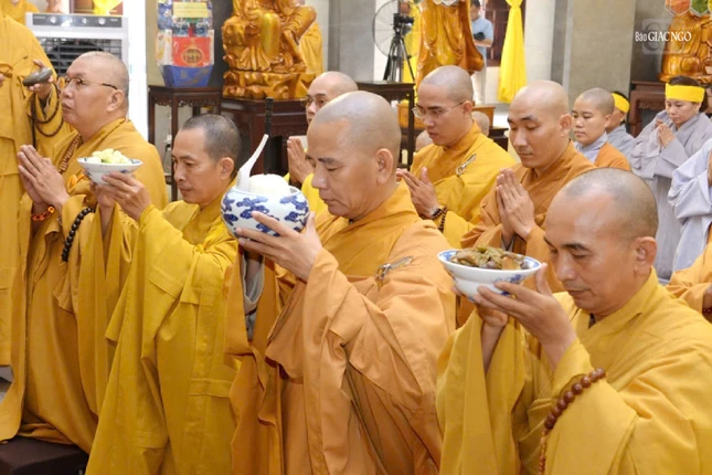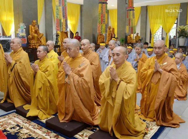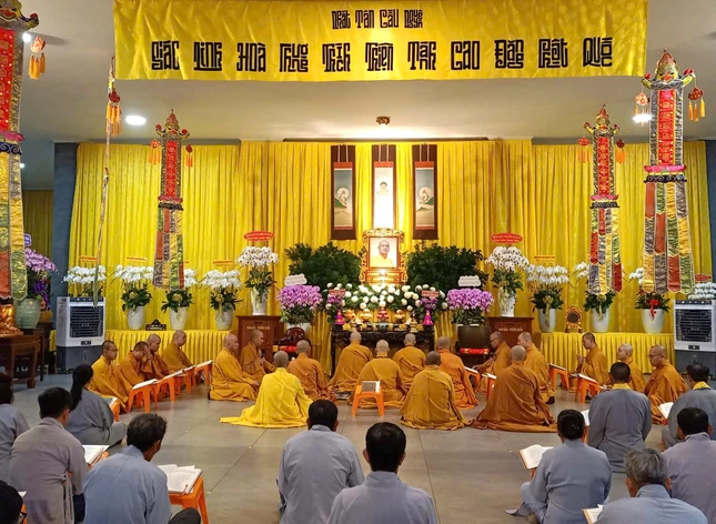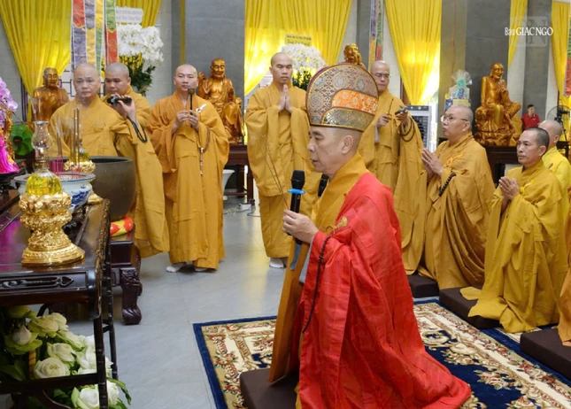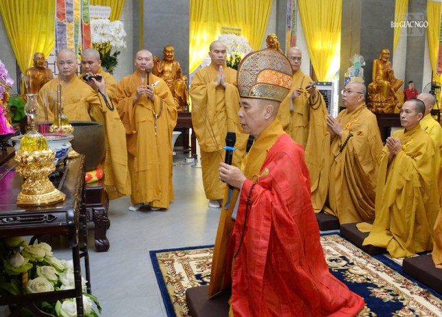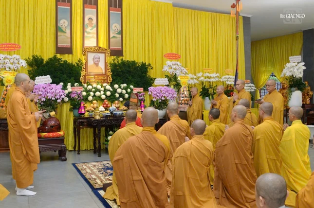 Trước Giác linh đài, dưới sự dẫn lễ của Hòa thượng Thích Lệ Trang, chư tôn giáo phẩm thành kính dâng hương tưởng niệm Trưởng lão Hòa thượng Thích Thiện Tánh - vị giáo phẩm có những đóng góp to lớn đối với sự phát triển của Phật giáo TP.HCM hơn 40 năm qua.
