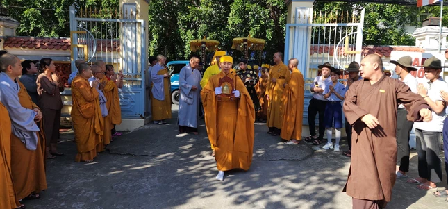 GNO - Sáng nay, 11-8, Ban Trị GHPGVN tỉnh Cà Mau cùng với Thường trực Ban Trị sự Phật giáo H.Đông Hải (Bạc Liêu) đã trang nghiêm cung thỉnh Giác linh Hòa thượng Thích Huệ Thành về hạ trường Sắc tứ Quan Âm cổ tự để cử hành lễ tưởng niệm, tri ân.