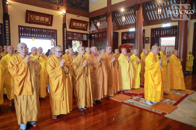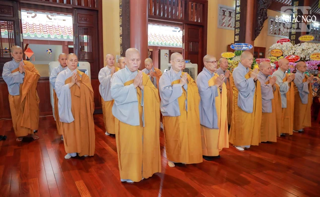 Trước Giác linh đài, chư tôn đức và đại chúng thành kính dâng hương, đảnh lễ tưởng niệm ôn lại những công hạnh của cố Hòa thượng Thích Nhật Lệ.