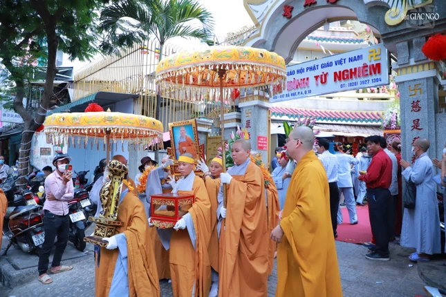 Ban Nghi lễ, môn đồ pháp quyến đã thực hiện các nghi thức thỉnh kim quan Ni trưởng Thích nữ Như Ngọc từ từ rời tổ đình Từ Nghiêm đến Đài hỏa táng chùa Hội Long (Long An) cử hành lễ trà-tỳ.