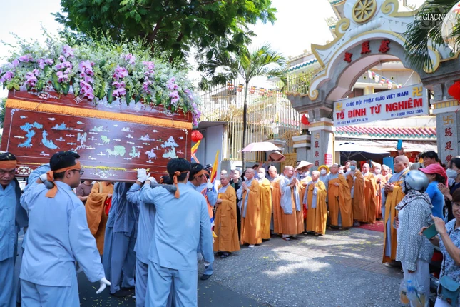GNO - Chiều nay, 24-2, tại tổ đình Từ Nghiêm, Ban Tổ chức Lễ tang, Ban Quản trị tổ đình, môn đồ pháp quyến đã trang nghiêm tổ chức lễ tưởng niệm và cung thỉnh kim quan Ni trưởng Thích nữ Như Ngọc, thành viên Ban Quản trị tổ đình Từ Nghiêm trà-tỳ tại Đài hỏa táng chùa Hội Long (Long An).