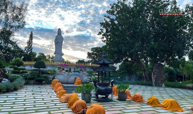 GNO - Sáng sớm  nay 19-6-Tân Sửu (28-7), tại Thánh tượng Bồ-tát Quan Âm lộ thiên trong khuôn viên chùa Huê Nghiêm - TP.Thủ Đức, chư Tăng đã cử hành nghi thức vía Đức Bồ-tát trang nghiêm.