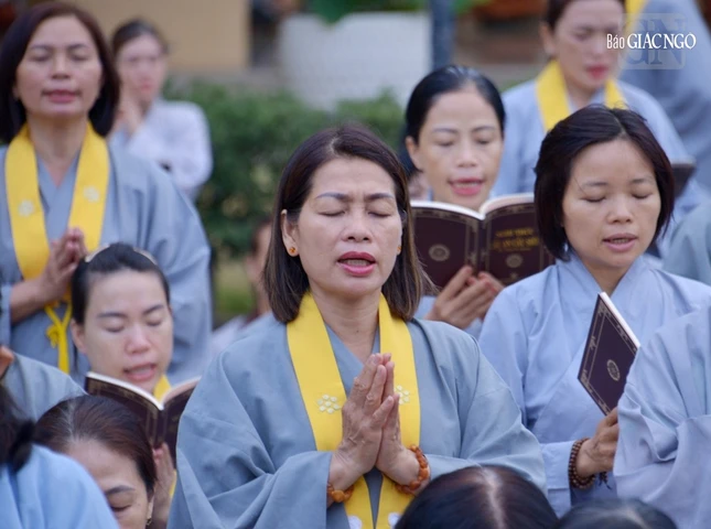 Sau đó, chư Tăng hướng dẫn đạo tràng tụng thời kinh Phổ môn, phát nguyện tu học theo hạnh nguyện của Đức Quán Thế Âm.