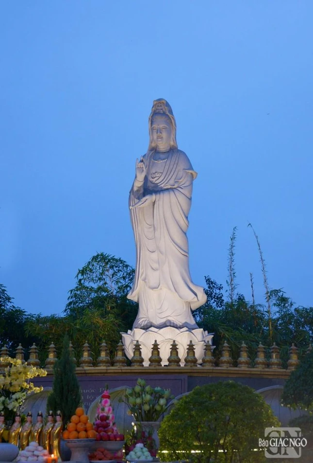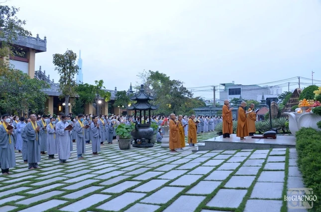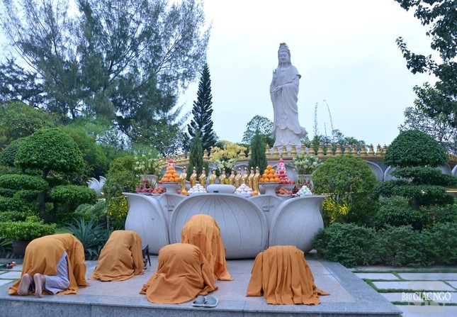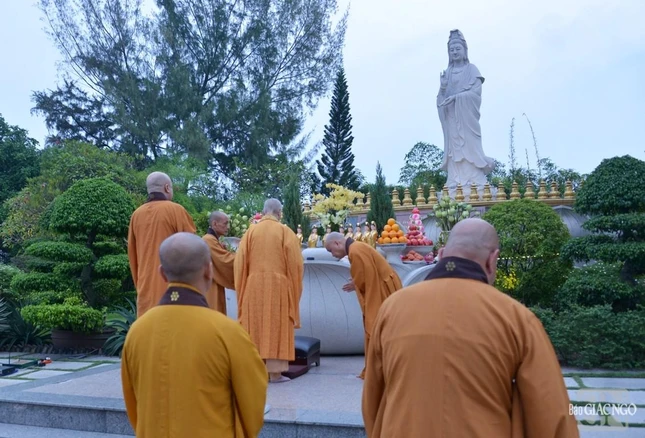 Trưởng lão Hoà thượng Thích Trí Quảng, Viện chủ chùa Huê Nghiêm quang lâm niêm hương. Chư Tăng bổn tự và chư tôn đức cử hành khóa lễ trước thánh tượng Đức Bồ-tát lộ thiên trong khuôn viên chùa.