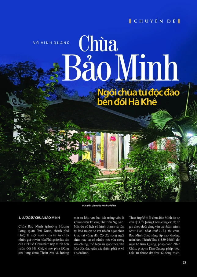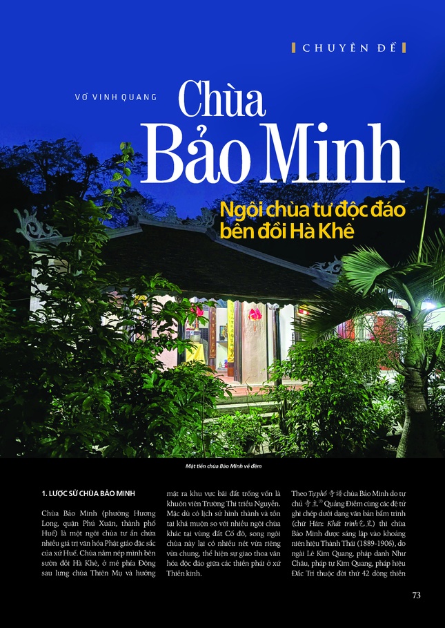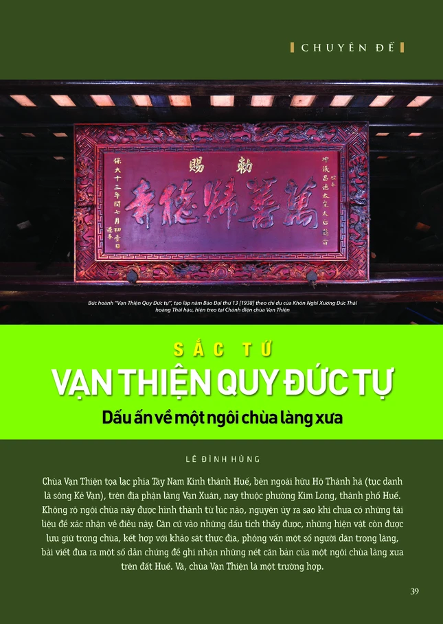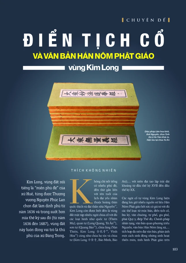 Với chuyên đề “Chùa cổ miền phủ đệ Kim Long”, ấn phẩm Liễu Quán số 35 giới thiệu đến độc giả hệ thống những ngôi quan tự (chùa công), chùa làng, chùa họ tộc và chùa tư nhân,…có tuổi đời đáng kính cùng hệ thống tư liệu, văn tịch hiện tồn có niên đại trải dài từ thời Cảnh Hưng cho đến cận hiện đại.
