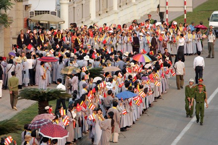 Niềm hạnh phúc, an lạc tràn ngập trong mỗi giọng nói tiếng cười, cái vẫy tay và cả sự chen lấn để được tận mắt chiếm bái Ngọc Xá lợi Phật. Đức Phó Pháp chủ Giáo hội Phật giáo Việt Nam Hòa thượng Thích Thanh Sam cùng Phó Chủ tịch nước Nguyễn Thị Doan cùng hàng ngàn người có mặt từ rất sớm để đón Ngọc Xá lợi.