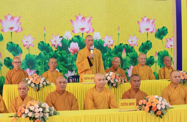 Buổi lễ khép lại sau phát biểu cảm tạ của Đại đức Thích Lệ Duyên, Phó ban kiêm Chánh Thư ký Ban Trị sự GHPGVN tỉnh.