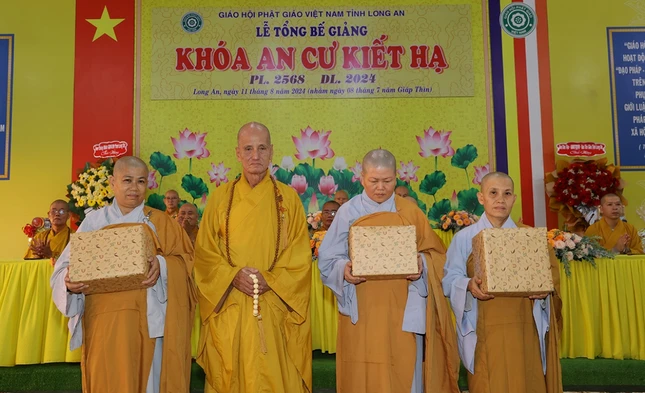 Hình ảnh ghi nhận tại lễ bế giảng khóa An cư kiết hạ của Phật giáo tỉnh Long An: