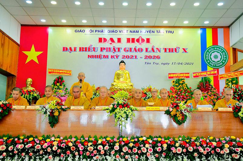 Tại đại hội, Hòa thượng Thích Từ Thiện, Trưởng Ban Trị sự GHPGVN huyện Tân Trụ, Trưởng ban Tổ chức phát biểu khai mạc cho biết Ban Trị sự Phật giáo huyện Tân Trụ luôn kế thừa truyền thống quý báu nghìn đời Phật giáo gắn liền với dân tộc, nêu cao tinh thần hòa hợp, đoàn kết nội bộ, thống nhất ý chí và hành động, phát huy nguồn trí tuệ của đại chúng Tăng Ni, Phật tử, khéo vận dụng tinh thần “Tùy duyên bất biến” trong mọi hoàn cảnh để phát huy tổ chức Phật giáo huyện nhà ngày một hưng thịnh, góp phần xây dựng Phật giáo Việt Nam phát triển vững mạnh trong sự hội nhập của dân tộc trên thế giới.