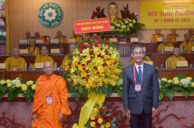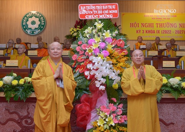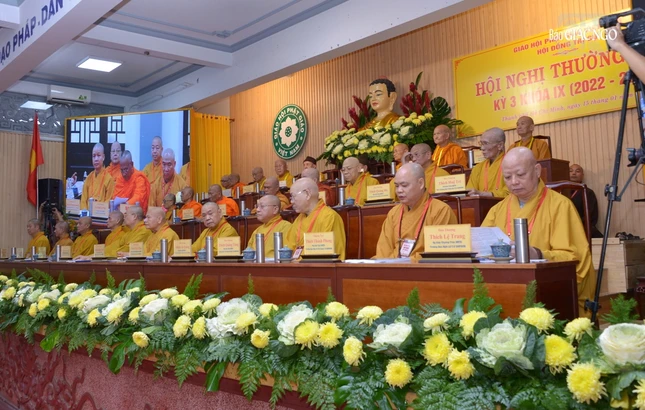 Trên tinh thần đó, thay mặt Ban Thường trực Hội đồng Trị sự, tôi tuyên bố khai mạc Hội nghị kỳ 3 - Khóa IX Hội đồng Trị sự GHPGVN.", Hòa thượng Chủ tịch Hội đồng Trị sự nhấn mạnh.