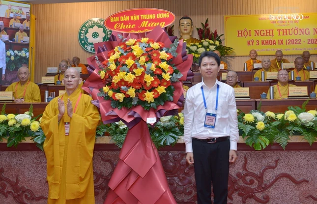Theo đó, năm 2023 là năm đầu tiên của nhiệm kỳ 2022-2027, GHPGVN đã vận dụng trí tuệ tập thể, tinh thần hòa hợp, đoàn kết, phát huy tính sáng tạo, giữ vững niềm tin Đạo pháp của các thành viên Tăng Ni, Phật tử cả nước. Qua đó, năm 2023, GHPGVN đã từng bước triển khai Nghị quyết Đại hội IX, triển khai Hiến chương GHPGVN sửa đổi lần VII, cơ cấu, bổ sung nhân sự 13 Ban, Viện T.Ư, ban hành các Quy chế: Hội đồng Trị sự, Ban Trị sự cấp tỉnh, cấp huyện; các Ban, Viện T.Ư, Quy chế Ban Quản trị cơ sở tự viện; công tác xây dựng và củng cố cơ sở Giáo hội tại các địa phương; tổ chức hội nghị sinh hoạt hành chánh Giáo hội; 2 Văn phòng Giáo hội và các Ban, Viện T.Ư được củng cố, tăng cường nhân sự hợp lý và hoạt động đồng bộ.