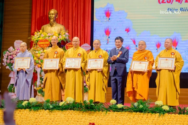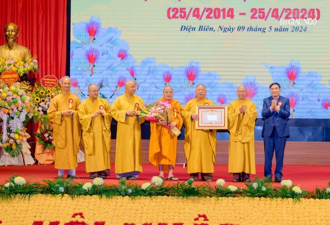 Dịp này, T.Ư GHPGVN trao Bằng tuyên dương công đức đến Ban Trị sự tỉnh, các ban trực thuộc và Tăng Ni tiêu biểu đã đóng góp vào sự phát triển GHPGVN tỉnh Điện Biên trong 10 năm qua.