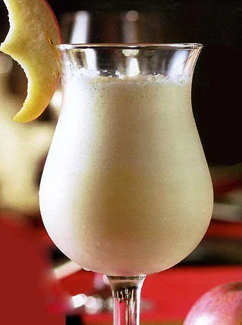 45ml sữa, 3 miếng táo, 1 miếng mãng cầu, 30ml nước ép thơm, 15ml siro vani, đá bào