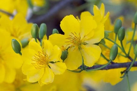 Ngày Tết, người Bắc thích trưng hoa đào còn người miền Nam lại chuộng hoa mai. Hoa mai mang sắc vàng - màu của vinh hiển cao sang, khi để bên mâm ngũ quả thì thật đẹp và trang trọng.