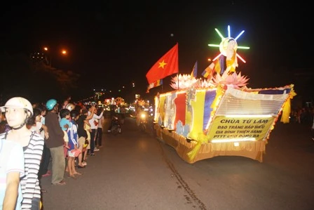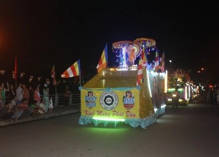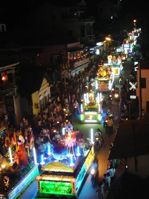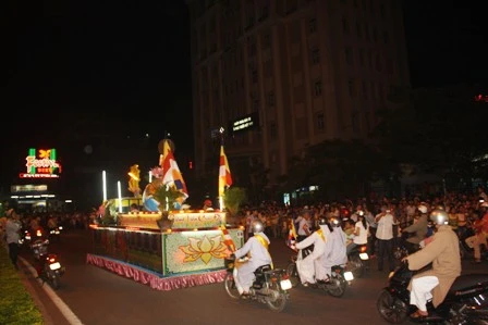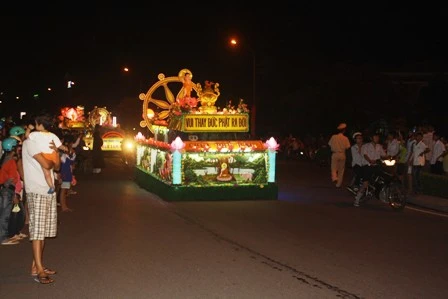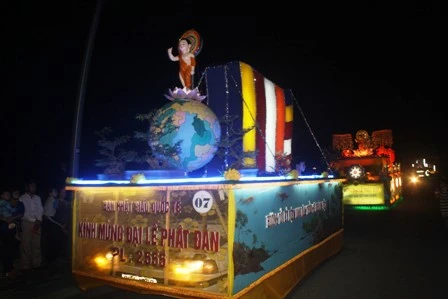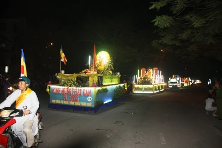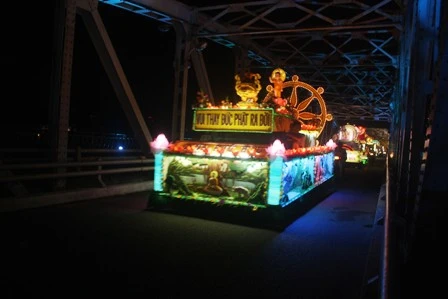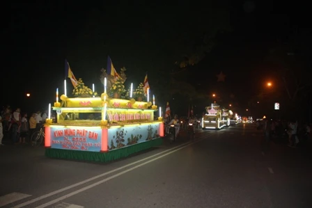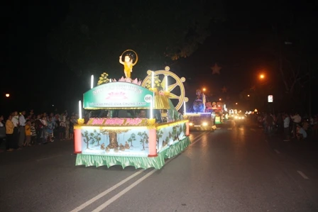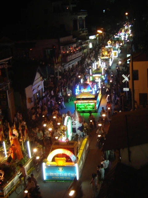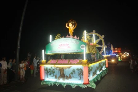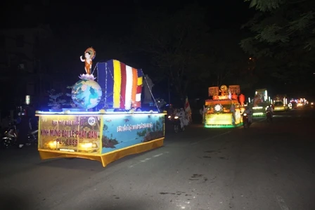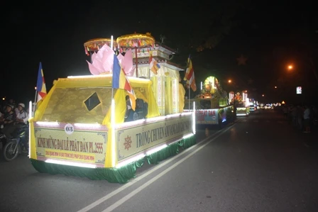Đoàn xe hoa từ từ di chuyển mang theo muôn sắc của ánh đạo vàng soi. Mỗi chiếc xe hoa là một bức thông điệp tâm thành của những người con Phật hướng về ngày đản sanh của Ngài, ngày thị hiện của trí tuệ tuyệt vời, của long từ bi rộng lớn vì hạnh phúc, vì an lạc cho tất cả chúng sanh.