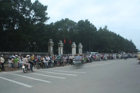 Những ngã tư giao lộ, hàng ngàn người dân Huế và du kháhc đổ ra đường đứng chiêm ngưỡng đoàn xe hoa trong sự tôn kính và đầy thán phục.