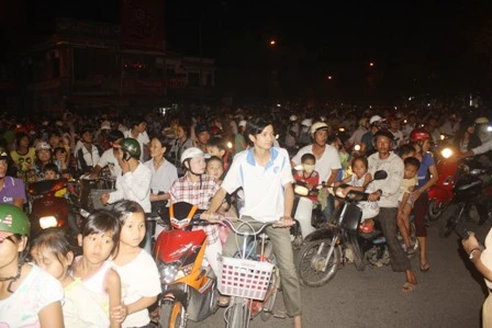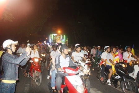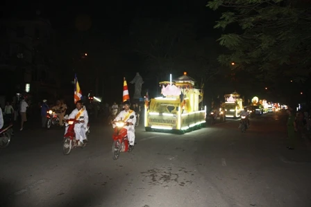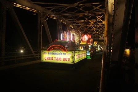 Từ hơn 2 giờ đồng hồ với lộ trình dài hơn 20km, trên khắp các nẻo đường của thành phố Huế trầm lắng đêm nay bổng rộn ràng hẳn lên, hầu hết người Huế đều đổ ra đường để hân hoan đón mừng đoàn xe đi qua với tâm nguyện đón mừng đức Phật đản sanh.