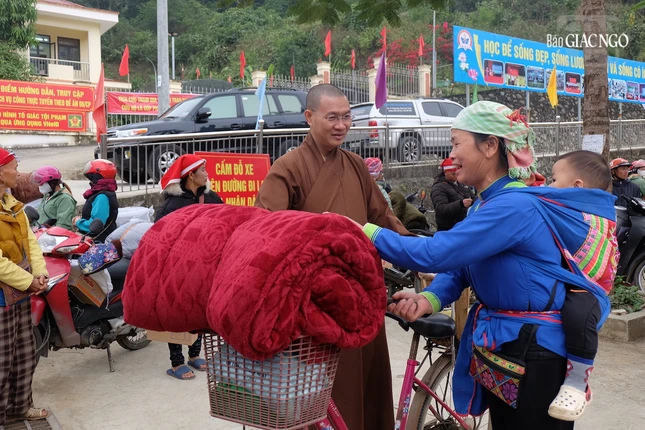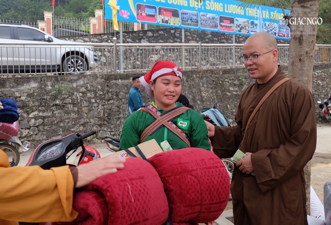 Phát biểu tại buổi trao tặng, Thượng tọa Thích Thanh Phong, Phó Chủ tịch Hội đồng Trị sự, Trưởng ban Kinh tế - Tài chính T.Ư, Trưởng ban Từ thiện - Xã hội Phật giáo TP.HCM đã có lời thăm hỏi đến đồng bào nhân dịp Tết cổ truyền Bính Ngọ của dân tộc đang cận kề, chia sẻ về hành trình chia sẻ yêu thương đầy ý nghĩa mà Giáo hội thực hiện vào mỗi dịp cuối năm để phần nào giúp đỡ bà con các dân tộc tại các địa phương miền núi phía Bắc vơi bớt khó nhọc, vui xuân đón Tết.