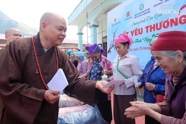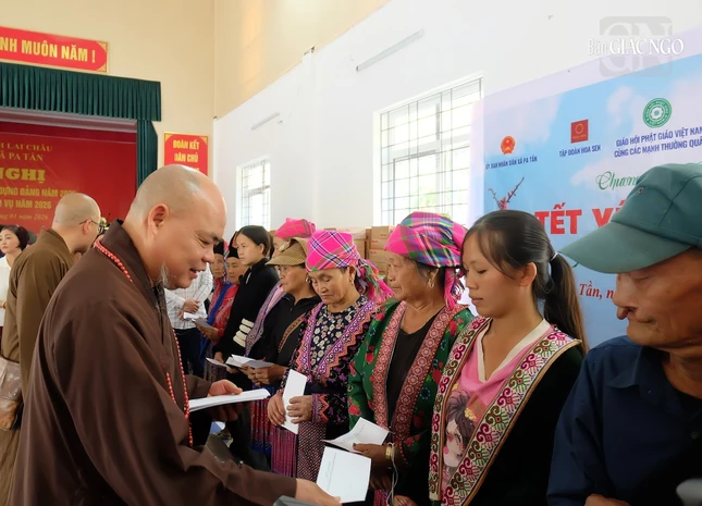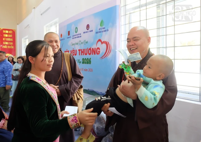 GNO - Ngày 28-1, theo lịch trình, chương trình “Tết yêu thương Xuân Bính Ngọ 2026” do Ban Từ thiện - Xã hội Phật giáo TP.HCM phối hợp cùng Ban Kinh tế - Tài chính T.Ư, các đơn vị, nhà hảo tâm tổ chức đã tiếp tục đến trao tặng các phần quà Tết tới đồng bào các dân tộc sinh sống trên địa bàn tỉnh Lai Châu.