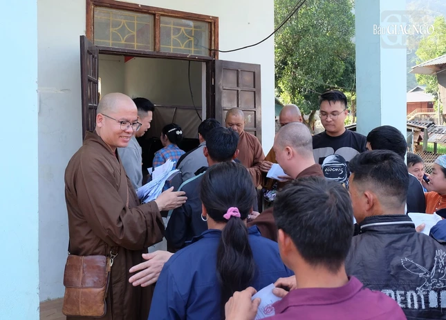 Thượng tọa Thích Thanh Phong trao phần hiện kim hỗ trợ các hộ dân sinh sống tại bản Nậm Vạc 1, Nậm Vạc 2 thuộc vùng biên giới tỉnh Lai Châu |