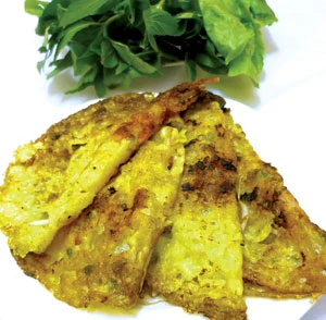 Cách làm: Nấm rơm cắt bỏ chân rửa sạch, ngâm nước gạo, thái mỏng. Poarô chẻ nhỏ, giá, xàlách, húng cây rửa sạch, để ráo. Đậu phộng, mè rang vàng, giã nhuyễn. Dưa leo, khế chua cắt lát mỏng. Chuối chát gọt vỏ, cắt mỏng ngâm với nước chanh loãng. Hoà hai chén bột gạo, ít bột năng, ba chén nước, muối, bột ngọt, đường, bột nghệ. Ham bò bóp nhuyễn trộn với poarô băm nhuyễn, nêm tiêu, đường, bột năng.