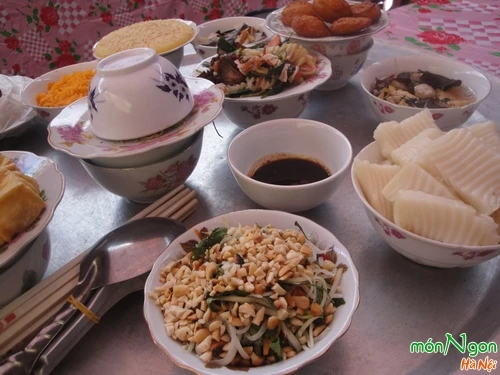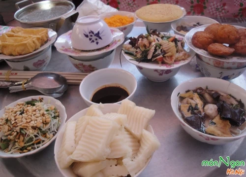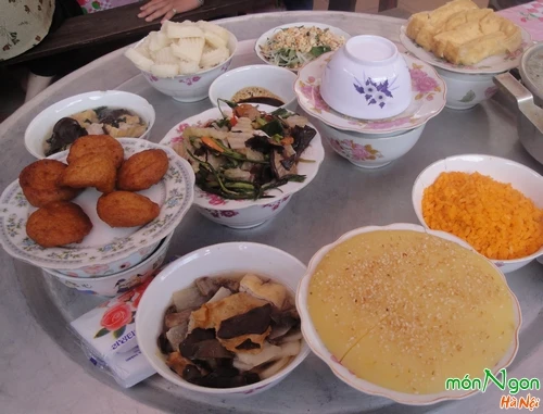 Mâm cỗ chay của chùa Phụng Thánh nổi tiếng Hà Thành bởi hương vị đậm đà mà thanh mát, bởi cái tỉ mỉ, cầu kỳ trong cách chế biến: giò lụa được chế biến từ đỗ xanh, tôm rang làm từ bánh đa, thịt gà làm từ măng, rồi cá xốt chua ngọt được chế tác từ hoa chuối…