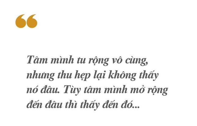 Tâm mình tu rộng vô cùng, nhưng thu hẹp lại không thấy nó đâu. Tùy tâm mình mở rộng đến đâu thì thấy đến đó, đầu tiên thấy Phật và Thánh chúng, Bồ-tát cứ lần lần mở rộng cho đến thấy cả pháp giới chúng sanh là mình đã thâm nhập thế giới Pháp hoa, mới hiểu ý nghĩa hoa Mạn-đà-la, hoa Mạn-thù-sa. Nghĩa là tâm chúng ta hoàn toàn trong sạch và trí chúng ta hoàn toàn sáng suốt khiến cho chúng ta thấy những hiện tượng mầu nhiệm trong trời đất.