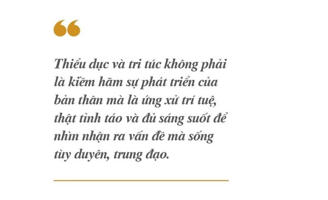 Thiểu dục và tri túc không phải là kiềm hãm sự phát triển của bản thân mà là ứng xử trí tuệ, thật tỉnh táo và đủ sáng suốt để nhìn nhận ra vấn đề mà sống tùy duyên, trung đạo. Ít muốn biết đủ xuất phát chính trong tâm khảm của ta. Ít muốn đối với chính những cảm xúc, tình cảm của chính mình; biết đủ đối với những thành quả mà mình đạt được. Miễn sao chúng ta sống luôn cố gắng tiến về phía trước, còn kết quả thì tùy thuộc nhân duyên, đủ nhân duyên sẽ cho hoa tươi tốt. Dẫu không như ý thì cũng mỉm cười ghi nhận và tiếp tục vươn lên.
