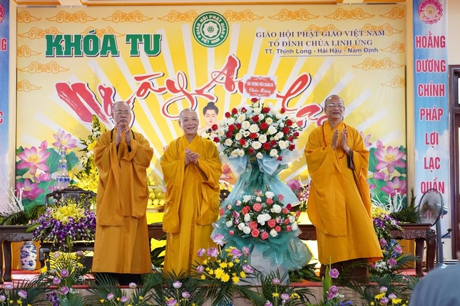 Chứng minh khóa tu có Hòa thượng Thích Bảo Nghiêm, Phó Chủ tịch Hội đồng Trị sự, Trưởng ban Hoằng pháp T.Ư; Hòa thượng Thích Thanh Huỳnh, Trưởng ban Nghi lễ Phật giáo tỉnh Nam Định, viện chủ chùa Linh Ứng; Thượng tọa Thích Chiếu Tuệ, Thượng tọa Thích Tâm Thuần, đồng Phó Trưởng ban Thường trực Ban Hoằng pháp T.Ư; Ni trưởng Thích Đàm Bích, Trưởng Phân ban đặc trách Ni giới H.Hải Hậu, trụ trì chùa Linh Ứng cùng chư tôn đức Tăng Ni trụ trì các chùa trên địa bàn huyện.