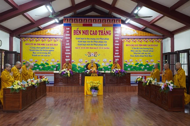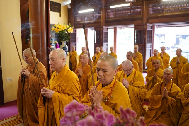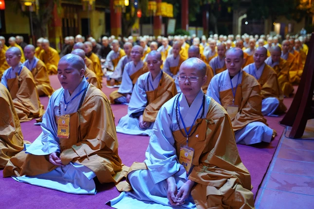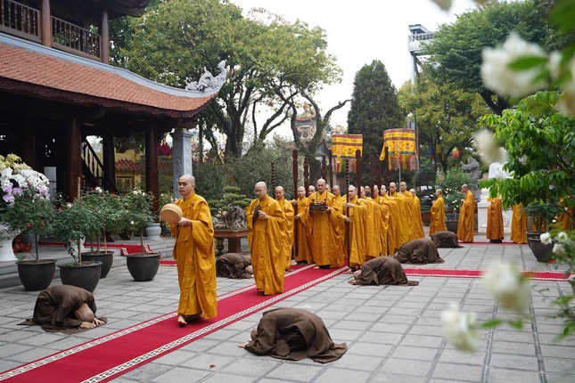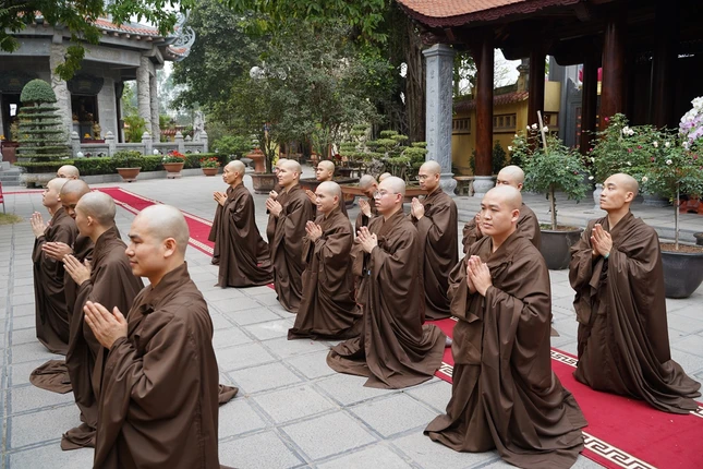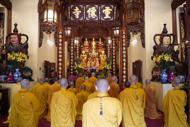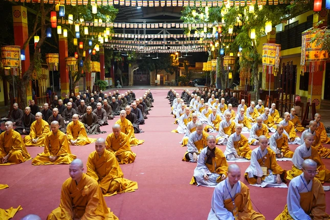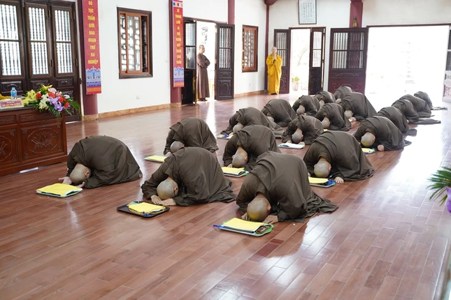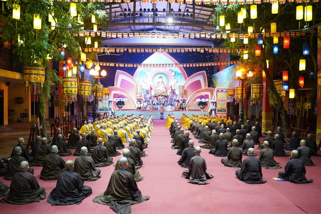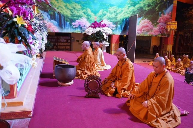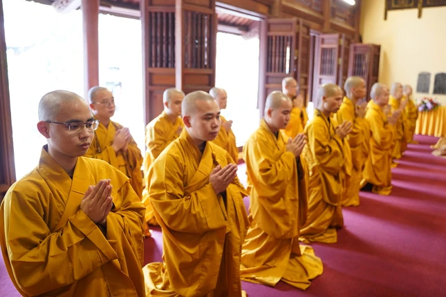 Từ 4 giờ sáng, các giới tử đã vân tập về nơi lễ đường trang nghiêm để trì kinh, sám hối, niệm Phật dưới sự chủ lễ của Hòa thượng Thích Bảo Nghiêm cùng chư tôn đức Tăng.