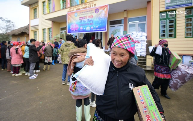 Tại UBND xã Y Tý (Lào Cai), đoàn đã hướng dẫn trao tặng 500 phần quà đến người dân trên địa bàn xã.