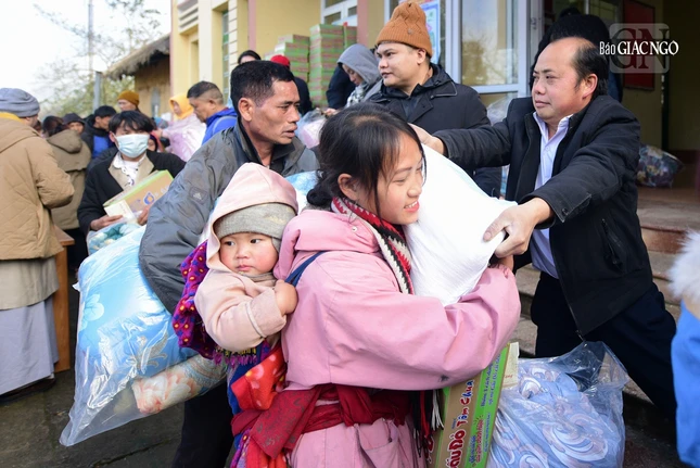 Mỗi phần quà bao gồm: bao thư 500.000 đồng và các vật phẩm thiết yếu như: chăn ấm, màn, gạo, 1 thùng mì... được trao đến bà con ở các địa phương vùng cao Tây Bắc của nước ta trong những ngày Tết cổ truyền sắp đến.