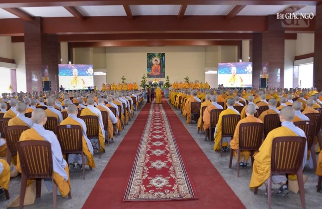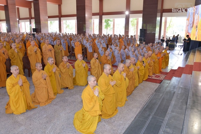 Chư Tăng Ni lắng nghe khai thị của Trưởng lão Hòa thượng Viện trưởng |